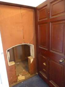 In 2020, an unusual feature was discovered behind a locked door in the former Dining Room, which led to under the stairs where there was a window at the back of the kitchen (previously an external wall) which may have been a serving hatch where food etc could be placed on a trolley and pushed through to the dining room.
