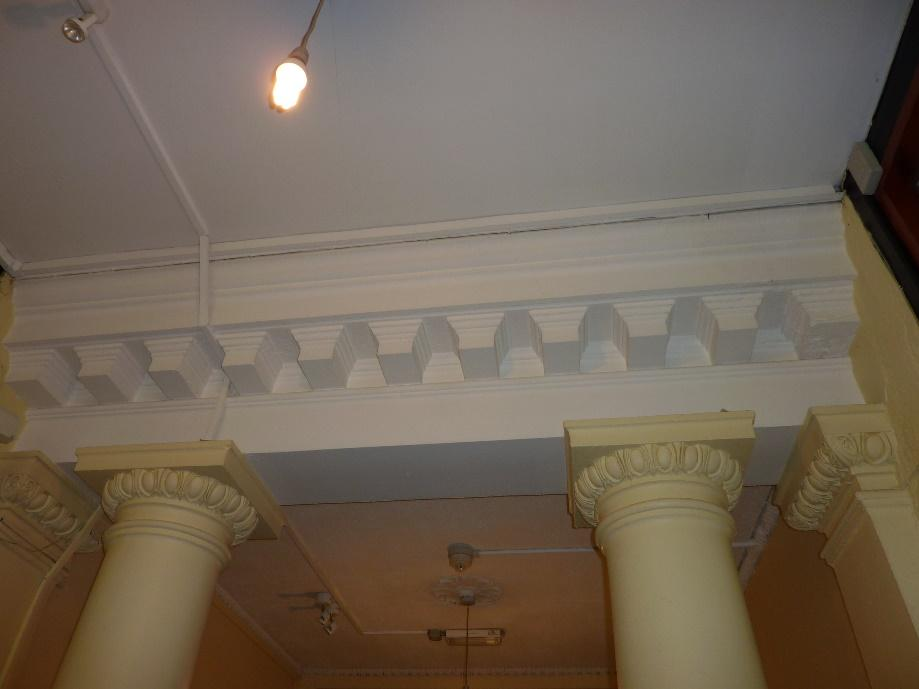 Meeting Rooms 1 and 2 have carved and fretted wooden pelmets and beautiful plasterwork, including an anthemion border in the former Drawing Room, and grapes and vines in the former Dining Room. Some rooms still have folding internal wooden shutters.